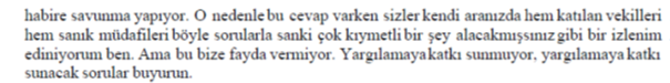 CUMHURİYET SAVCISI : Cevap vermek elinde sözümü kesmeyin. Ben sanık konuşurken sözümü kesmeyin.