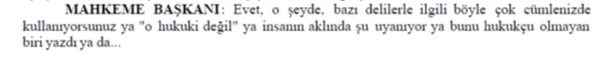 MAHKEME BAŞKANI: Biz adaleti sağlıyoruz, sağladığımıza inanıyoruz.