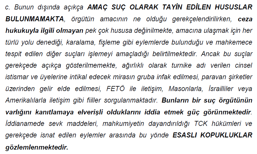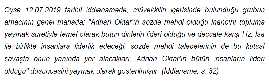 Bununla birlikte 2025 yılı itibariyle; müvekkil Adnan Oktar ve arkadaşları hakkında ortaya atılan ağır suçlamalar arasındaki;