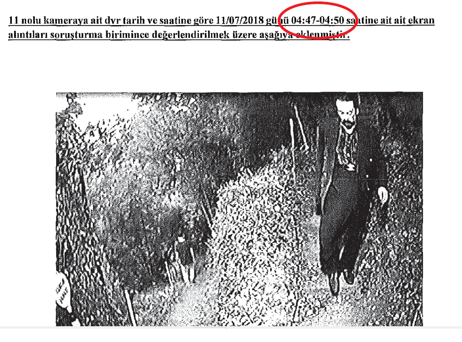 - Mert Sucu’nun sözde polislere ateş açmasının nedeninin güya müvekkil Adnan Oktar’ın ikametten kaçmasını sağlamak olduğu ileri sürülmüştür. ANCAK BU İDDİANIN DA ASILSIZ OLDUĞU ORTAYA ÇIKMIŞTIR. Zira olay yeri inceleme tutanağında görüldüğü gibi operasyonda görevli polislerin müştemilat alanına varmaları 06:00-06:15 civarıdır. Polislere ateş açılması olayının ise 06.30’da gerçekleştiği ileri sürülmektedir. Müvekkil Adnan Oktar’ın bahse konu ikametten, Mert Sucu’nun suçlandığı olayın yaklaşık 2 saat öncesinden çıktığı anlaşılmıştır. Bu durum, Mert Sucu’nun müvekkil Adnan Oktar’ın kaçışını kolaylaştırmak için polislere ateş açtığı iddiasını çürütmektedir. Aşağıdaki kamera görüntüsü ve polis tutanağı bu gerçekleri teyit etmektedir.