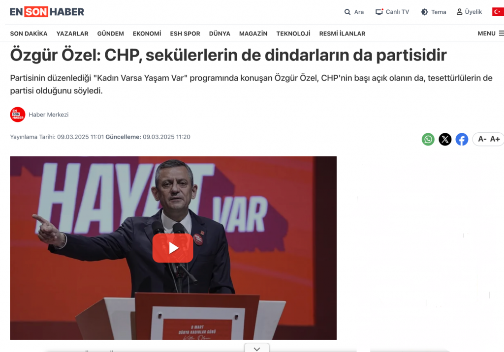 Sn. Özgür Özel, her ne kadar dindarlara sahip çıksa, onların haklarını savunsa da, sizin basın yoluyla sesiniz daha güçlü çıktığından ve sürekli bir karşıtlık üslubu içinde olduğunuzdan, sizin bu üslubunuz CHP’ye yakıştırılmaktadır. SİZİN BU TAVRINIZ NEDENİYLE, CHP SEÇİLEMEMEKTEDİR.
