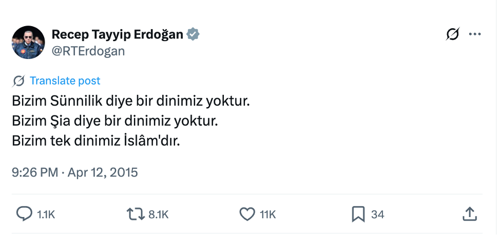 “Bizim Sünnilik diye bir dinimiz yoktur… Bizim tek dinimiz İslam’dır.”