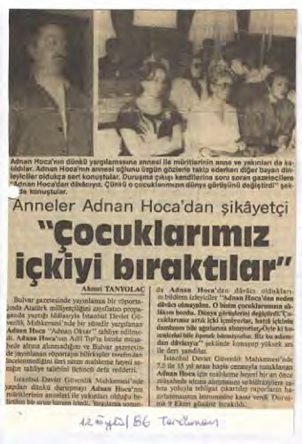 Örnek vermek gerekirse, 12 Eylül 1986 tarihli Tercüman Gazetesi’nde Ahmet Tanyolaç imzasıyla yayınlanan bir yazıda, müvekkilin Devlet Güvenlik Mahkemesi’nde görülen yargılamasına ilişkin olarak duruşmaya katılan bazı ailelerin müvekkil hakkında: