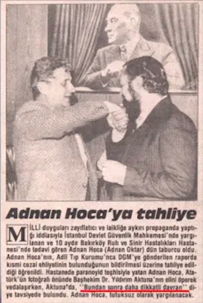 Müvekkilin 1986 yılında Bakırköy Ruh ve Sinir Hastalıkları Hastanesinde tutulduğu 10 Aylık dönem içerisinde çekilen (yukarıdaki) fotoğraf, 6 Ağustos 2018 Tarihinde Haber Türk TV Ana Haber Bültenin’de “31 yıl önceki Adnan Oktar” haber başlığı ile yayınlanmıştır.