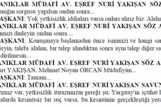 2.23.MAHKEME HEYETİ SANIKLARI, SAVUNMALARI ESNASINDA “ESAS HAKKINDA MÜTALAAYA CEVAP VERMEKLE SINIRLANDIRDIĞI” HALDE BU DURUMU TUTANAKLARA FARKLI ŞEKİLDE GEÇİRTMİŞTİR